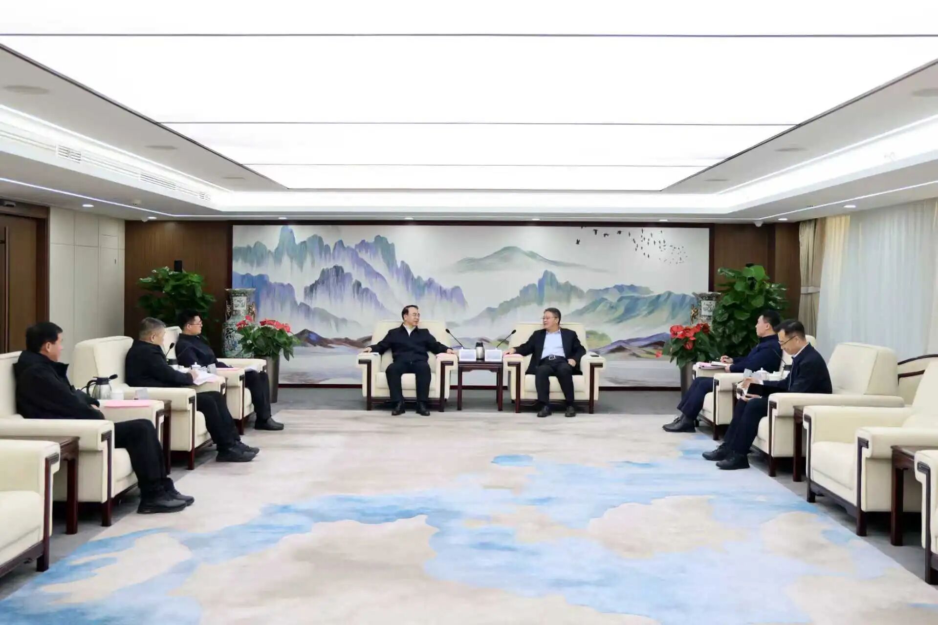 11月27日,中国中煤党委书记、董事长王树东在集团总部会见黑龙江省七台河市委书记陈延良,双方围绕加强企地协同、拓展合作领域开展座谈交流。七台河市副市长雷东升参加会见。