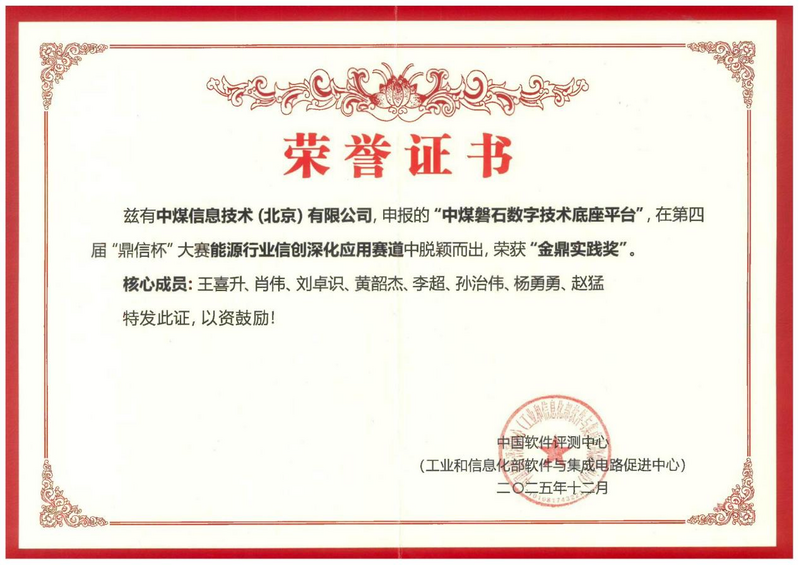 “鼎信杯”信创技术大赛是由中国软件评测中心主办的全国性信创权威赛事,对推动产业发展、选拔优秀成果具有重要作用。中煤信息公司自主研发的“中煤磐石数字技术底座”,以能源行业信创深化应用为核心目标,成功打造中煤能源信创云平台,实现从传统单体软件架构向信创云原生架构的全面跃迁,支撑了中国中煤集团数字党建、审计、企业经营管理、煤炭、煤化工、电力、供应链管理、产销协同等60余个战略业务系统,服务终端用户超10万人,为集团数字化转型提供了坚实的技术支撑与创新动能。